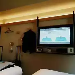 -A clean large public bath and open-air bath with a view on the top floor (not a hot spring, you can see the number of users through the TV menu)