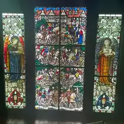 The images and text on the stained glass are said to condense the history of England, from the glorious era under Queen Victoria to the Edwardian era and on to the First World War. 🇬🇧✨