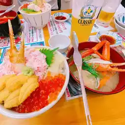 #Hokkaido trip#Hokkaido trip#Hokkaido gourmet#Otaru sightseeing#Otaru gourmet#Sankaku Market#Market Restaurant Ajidokoro Takeda#Market restaurant#Ajidokoro Takeda#Three-meal bowl#Crab#Raw sea urchin#Salmon roe#Crab soup#Draft beer#Hokkaido sightseeing