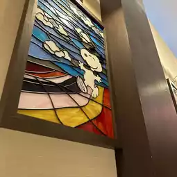 I ate and bought some food on the basement floor. There is a staircase at the very side that leads to the second floor. In front of the stairs is a display case with stained glass from the previous Otaru store. After going up the stairs, you will see the photo-taking spot of "SNOOPY Chocolat Otaru", which has cute props such as violins and musical notes. In addition, all the classic chocolates are available here, so you can feel that "SNOOPY Chocolat" is shining in Otaru!