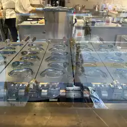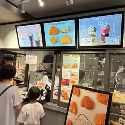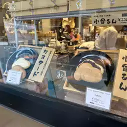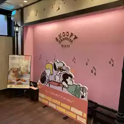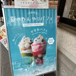 When I walked to the front of the store, I saw a blurry image of Snoopy on the glass facing the street. The "Snoopy-yaki" made with red beans from Tokachi, Hokkaido, and ice cream are delicious.