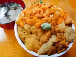 Today, I visited the legendary Sankaku Market in Otaru. I was so excited! Watching Japanese TV shows introducing those seafood dishes always made my mouth water. As soon as I arrived, I headed straight to the sea urchin section and had a bowl right away. The sea urchin was actually pretty good, and the portion was decent. But after calming down, I realized that the taste isn't too different no matter where you eat it. If you like seafood, it's worth a visit. It's quite nice.