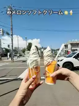 Melon soft serve was sold at a shop called "Kaiya" near the ticket booth for the Otaru Canal Cruise 🍈You have to try this 🥹The thick melon and rich soft serve are irresistible 😩🩷