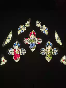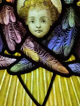 The images and letters depicted in the stained glass condense the history of Britain, from the glorious era under Queen Victoria to the Edwardian era and on to World War I.