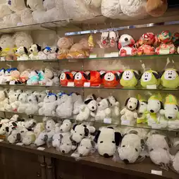 There are Snoopy dolls, stationery, and fashion items, as well as Snoopy drinks, Snoopy Choco-an, and other food.
