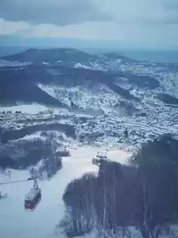 After eating, take the cable car up to Tengu Mountain. Tengu Mountain not only has a ski resort, but is also a great place to enjoy the night view. As the cable car climbs upward, the entire city of Otaru and the coastline slowly come into view. During the day, it is a large expanse of silver-white snow, and at night, the lights and the blue sea are intertwined, like sparkling gems. There is also a small Tengu Shrine on the top of the mountain where you can see Tengu masks or experience the local Japanese culture.
