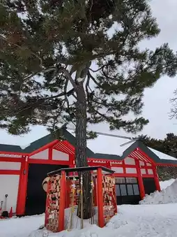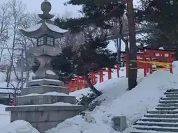 [Hokkaido] A shrine with a beautiful contrast between the ginkgo trees and snow