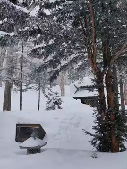 Unfortunately, the snow and the fog made the visibility poor, and the coastline was not very clear. However, when you walk into the snow-covered Tenguyama Shrine, the woods and the shrine torii half-submerged in the snow are like entering a fairy tale world. The shrine under the snow is really dreamy.