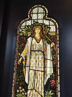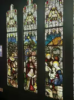 Some noteworthy stained-glass windows include "The Sower," "The Canterbury Tales," and "The Last Supper."