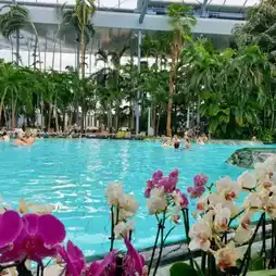 Therme Bucharest, one of the biggest wellness, relaxation and entertainment centres in Europe, has an indoor temperature of 30°C/86°F and a water temperature of 33°C/91°F, every month of the year.