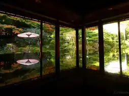 Each of the two-story teahouses has a small lacquered table, and you can enjoy the upside-down autumn leaves as shown in the first and second pictures.