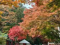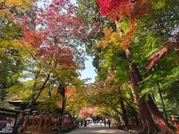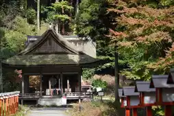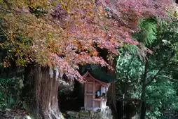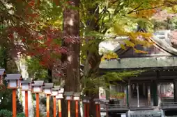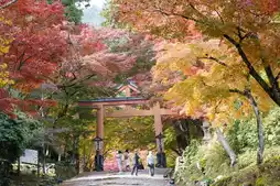 The shrine occupies a large area and is built along the mountain. There are tall maple trees on both sides of the main shrine of Nishimotogu Shrine. In late autumn, the red clouds look like fire, complementing traditional buildings such as torii gates and shrines, and the scenery is not inferior to any other in Kyoto. What’s even more rare about this famous spot for autumn viewing is that it’s relatively not too crowded. In addition to viewing the maples, the small bridges and flowing water created by the natural landscape are also a major feature of the shrine.