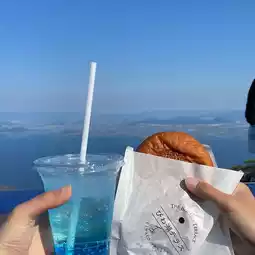 We took the ropeway up Biwako Valley, got a panoramic view of Shiga Prefecture at the top, and had curry bread and juice!