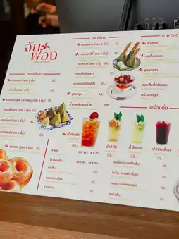 Thai desserts here are made with a non-sweet recipe, very good ingredients, can be eaten continuously. Desserts are gradually added throughout the day, but some may run out quickly. If you go a bit early, there may be more to choose from. The dessert menu is ordered as a set (2 pieces or 5 pieces) starting at 25.- In addition to Thai desserts, there are also breakfast sets, soft-boiled egg sets, and beverage menus such as tea, iced coffee, Yok Lo, longan juice, etc. starting at 45.-