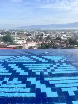 Perched atop the city’s skyline, the sky pool at ZHM Premiere Padang isn’t just a place to swim—it’s a place to float between worlds. On clear mornings, the water turns a soft blue, mirroring the sky so perfectly that you feel suspended in light. The edges blur, and Padang’s rooftops stretch out like a living mosaic beneath your feet.