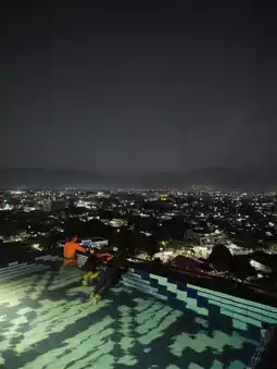 The water was warm, the city was glowing, and for a moment, I forgot gravity. Floating in the skypool above Padang, I watched headlights trace the hills like fireflies on pilgrimage. The skyline shimmered—mosques, markets, and mountains stitched together in quiet gold.