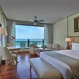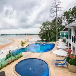 This resort is located on the Cherating Beachfront, Pahang's most beautiful and relaxing coastal location in eastern Pahang. Its design is reminiscent of Santorini, Greece, with its blue and white architecture, making it stunning.