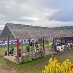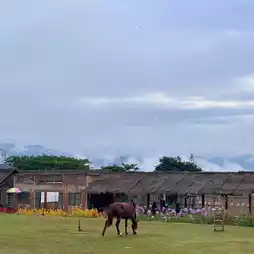 Today, I came to Mae Hong Son and woke up to the cold weather. I had to wake up early to go to the sea of mist viewpoint, "Yunlai Sea of Mist", located at Ban Santichon, Pai District, Mae Hong Son Province. We can come to the viewpoint where we can watch the sunrise. I recommend coming at 6 am. There will be a lot of fog. It's very beautiful and you can see a 360-degree view of the sea of mist. It's another place in Pai District where you can come up to sip tea and eat steamed buns in the morning and watch the sunrise. The atmosphere is very good. I highly recommend it! During this time, you can't bring your own car up. You have to rent a car up for 300 baht because you can't bring your own car up.