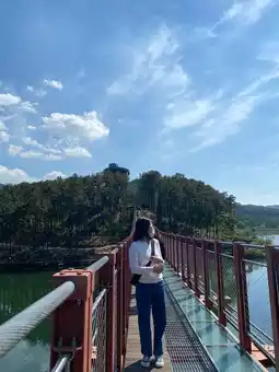 The swinging bridge doesn't shake as much as you might think, and there is a metal hole in the middle, so it's scary, but I had a lot of fun👍