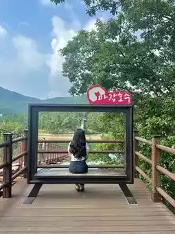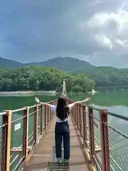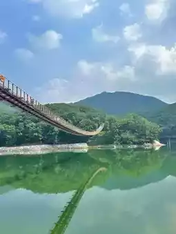 "Majang Lake Swinging Bridge" is a place where you can enjoy a walk and thrill on a sunny day.