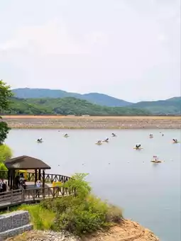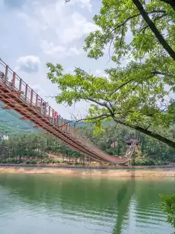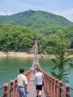 This is the Majang Lake Swinging Bridge located in Paju, Gyeonggi-do.