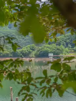 I walked around the lake after crossing the bridge, and it was a nice place to take a walk because the deck was neatly built.
