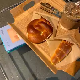 And on the way home, I had some delicious bread and coffee at a cafe called Around Eight. It is a bakery cafe, so there are many kinds of bread, and the salt bread was very delicious!