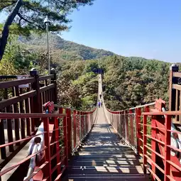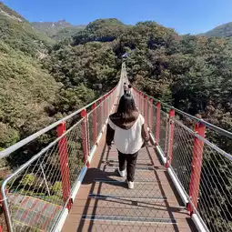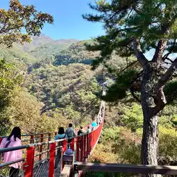 We conquered a challenging thousand-step climb, leading us to the nation's longest tower-less suspension bridge, a remarkable 150 meters in length. With the forest's delightful scent surrounding us, our journey was truly uplifting. Gamaksan, rising 675 meters high, perfectly blends with nature. And guess what? It's a famous spot in Ep 1 of Forecasting Love & Weather, where Song Kang soaked in the fresh mountain air and lush scenery.🇰🇷🎥⛰️🌳🎋🍃🍂