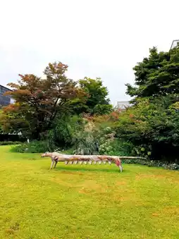 The building is designed to resemble a cat drawn on an empty field. After viewing the exhibition, take a walk around the museum to spot the cat's figure!