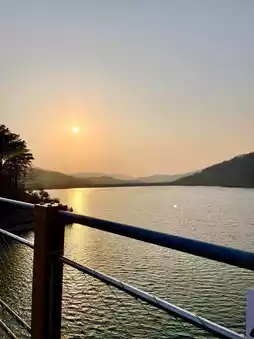 Below the bridge, Majang Lake stretches out before you, and the sunlight streaming through the mountains, the cool breeze, and the thrill of the bridge!