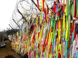 Imjingang Dokgae Bridge was a bridge that served as part of the Gyeongui Line that connected the South and the North from 👣Seoul to Sinuiju👣. However, it was severed due to bombing during the Korean War that broke out in 1950, and it was left standing without being restored due to the division between the South and the North. Some of the bridge piers of Dokgae Bridge have numerous bullet marks, as if to represent the tragic scene during the Korean War.