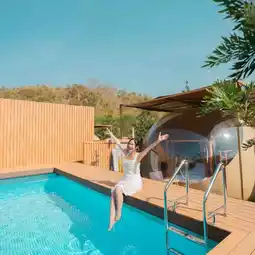 🏕️ 𝐓𝐡𝐞 𝐗𝟏𝟎 𝐏𝐫𝐢𝐯𝐚𝐭𝐞 𝐏𝐨𝐨𝐥 𝐕𝐢𝐥𝐥𝐚 & 𝐑𝐞𝐬𝐨𝐫𝐭 𝐊𝐡𝐚𝐨 𝐘𝐚𝐢 Voyager Glamping style accommodation, which is a dome tent with complete facilities. There is also a telescope and Netflix. The bathroom is separate and outside. And most importantly, there is a private pool for chilling out in the water, but taking great photos.
