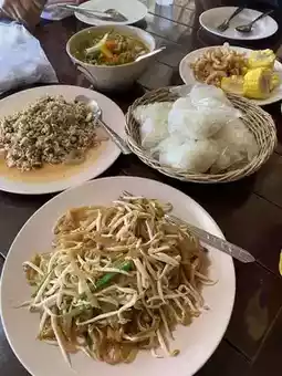 I booked a 1-night stay with a buffet of 3 meals. The food was very delicious. Every meal was delicious. Lunch was som tam, larb, fried chicken. Dinner was steak, spaghetti, sausage. Breakfast before checking out was pork congee and fried eggs.