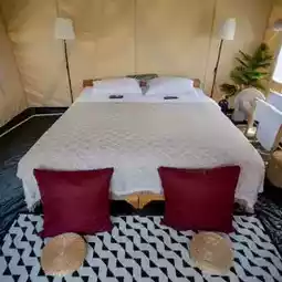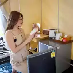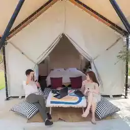 - Here, there are 4 types of rooms: Star Tent, Stella Tent, Luna Tent, and the newest Camping Caravan. We stayed in Stella Tent, which is a larger tent than Star Tent, designed with a front seat for sitting and enjoying the breeze and watching the sunset. It has a private bathroom and complete facilities. Most importantly, it is very clean. It is a very comfortable camping stay.