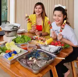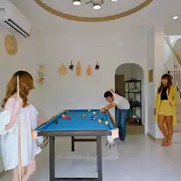 There is WiFi, karaoke, pool table, barbecue with charcoal, ice bucket with ice, kitchen equipment, grill ring at the pool, and food and drink service. Here you can also order delivery service from 7-11. You can say that when you arrive at the accommodation, you don't have to drive out to find food.