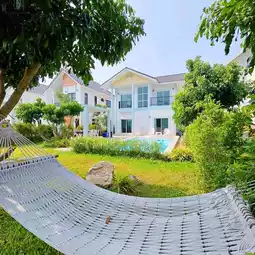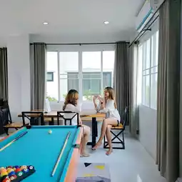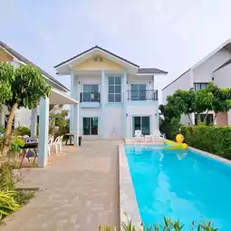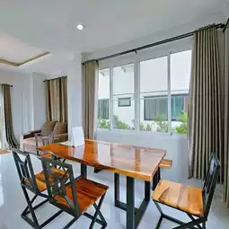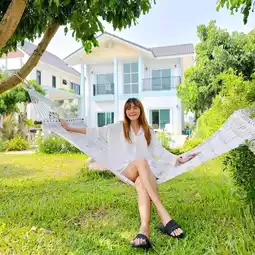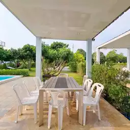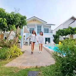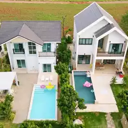 Where to go in this heat? Let's stay at a Poolvilla! The accommodation is spacious with a private swimming pool at Espano Musi Khaoyai. There are several houses available, including the newly named Longan Garden Khaoyai Pool Villa, which features 4 bedrooms 🛌, 3 bathrooms 🚽, 1 kitchen, and 1 living room. It can accommodate up to 8 people 👭👭. The villa is equipped with WiFi, karaoke, game tables, BBQ grill with charcoal, ice bucket with ice, kitchen utensils, and a poolside grill. Food and drinks are also available for purchase, so you don't have to go anywhere else. Spend your holidays with friends and family at home, partying all day long. Don't know where to go on weekends? Invite your friends and family to stay here!