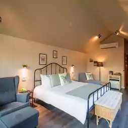 Giving off a very international vibe, Thara Dara Khaoyai has opened a new zone, and it's absolutely stunning! Enjoy the privacy of a Nordic-style vacation home with an outdoor bathtub. The rooms are beautifully decorated, luxuriously appointed, and come with en-suite bathrooms and complete amenities. In the evening, enjoy a relaxing meal of moo kata (grilled pork). For those looking for a relaxing getaway, we highly recommend this place. In the morning, they have bicycles for you to ride around and enjoy the view, or you can enjoy a picnic breakfast on the lawn. They have props provided. #GoodAtmosphereAccommodation