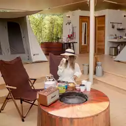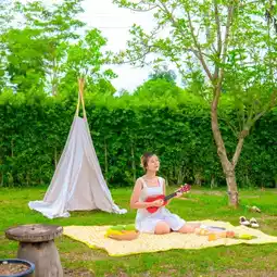 and a chill camping area with grilling equipment.