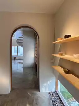 The shop's atmosphere is a white theme with a Japanese-style garden behind the shop. There are many beautiful corners. It's very minimalist.