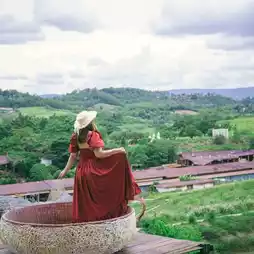 Flower Mountain Khao Yai is a Balinese-style accommodation with many beautiful photo spots. It's great to bring your lover and family to stay here. There is a secret cafe in the middle of a valley that I must say has many photo spots.
