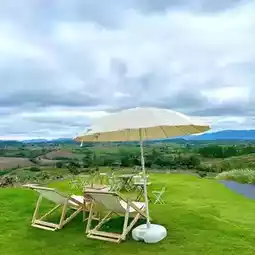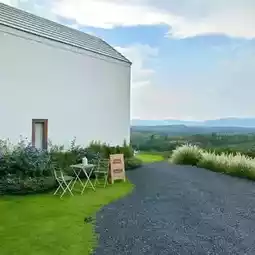 A small home cafe on the mountain with a view that is far away with nothing blocking it. Plus