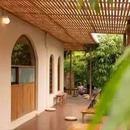 A nice atmosphere, a shop that is inviting to relax, both inside and outside