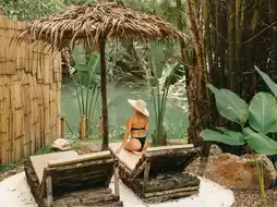 📍Hatchu khaoyai Hatchu Khao Yai, the name of a beautiful accommodation in the middle of Khao Yai's nature, a source of fresh ozone air near Bangkok that will let everyone stop time and enjoy themselves here. The atmosphere is surrounded by trees, streams, tranquility, and privacy. And the lovely and attentive service of all the staff