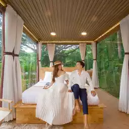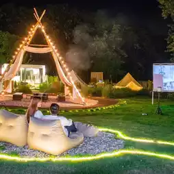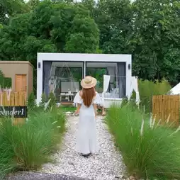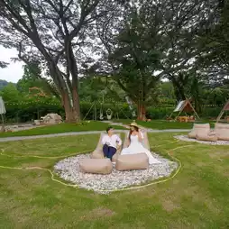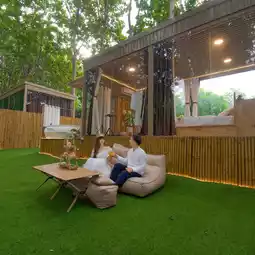 Honeymoon Glamping Khaoyai, a nice accommodation with a green area that is pleasing to the eye. We stayed at a glass box house, beautifully decorated, well-proportioned rooms, with a jacuzzi for taking cool photos, beautiful photo corners, complete facilities and a variety of rooms to choose from. The accommodation is located by the stream. In the evening, sit and eat grilled pork here, there is also spicy papaya salad and fried chicken, very delicious. There is also an outdoor movie to watch. You won't be disappointed if you come here. If you are visiting Khao Yai and are looking for a quiet place to stay with a good atmosphere like this, I recommend this place. #Good atmosphere accommodation