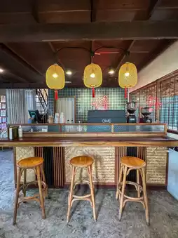 🏮Hao Khao Yai, an old wooden house that has been renovated into a nice atmosphere shop, decorated in Chinese style. It serves breakfast and drinks, both savory and sweet. All the menus are delicious, such as Khao Piek, Kai Kratha, Bread, Custard. There is also a tea and coffee menu with a signature menu for us to try new menus. We ordered a coffee menu called 'HAO Hao', the shop's signature menu, which has coconut water and coconut cream. The taste is very delicious.