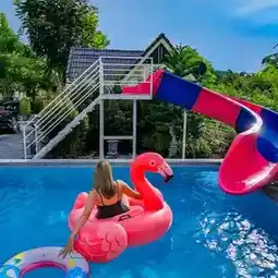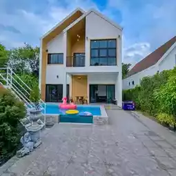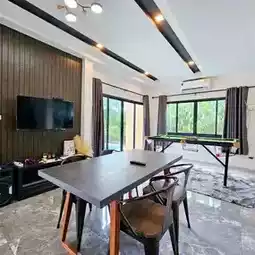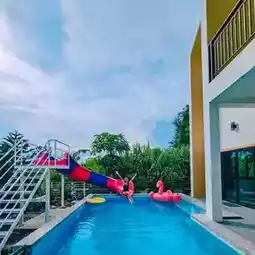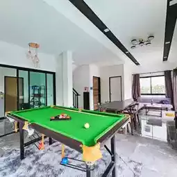 There is a private swimming pool in front of the house with a slide for fun. For those who want to organize a barbecue party, this place has complete equipment. In the house, there is a pool table for you to play and karaoke for singing. It can be said that if you stay here, you don't have to go anywhere.