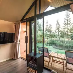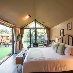Thara Dara Khaoyai has opened a new zone, and it's absolutely stunning! Nordic-style vacation homes offer privacy and an outdoor bathtub for the ultimate indulgence. The rooms are luxuriously decorated, with en-suite bathrooms and complete amenities. In the evening, enjoy a relaxing meal of moo kata (BBQ). For those looking for a relaxing escape, we highly recommend this place. In the morning, they have bicycles for you to enjoy the view, or you can enjoy a picnic on the lawn with props provided.