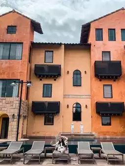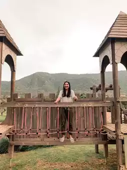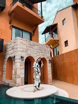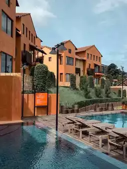 A large accommodation surrounded by mountains with Italian-style accommodation. The first place you drive into is a replica of the Leaning Tower of Pisa standing tall in front. Inside the accommodation is a replica of a large city, complete with shops, many restaurants, and a variety of accommodation styles to choose from. Including common areas such as swimming pools, there are many styles with different views.