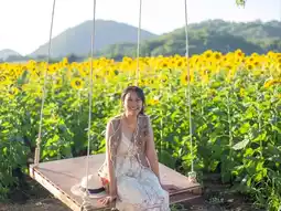 They're blooming now...🌻🌻🌻 The sunflower field in Khao Yai @Rai Manee Sorn, Pak Chong District, Nakhon Ratchasima Province, is blooming to welcome the cold weather. It covers an area of several rai and can be seen as far as the eye can see. The bright yellow is very beautiful and magnificent. Most importantly, it's not far from Bangkok. But don't worry, if you don't make it in time to take pictures of the sunflowers in this field, there are many more fields waiting to bloom. It is expected to bloom continuously until January. Follow the updates from the Rai Manee Sorn page. We recommend going in the morning when the weather is cool. The sunflowers are raising their flowers to welcome the light. Or you can take pictures in the evening light, which is equally beautiful. There is also a zone to feed the sheep, rabbits, and pigs. Prepare your beautiful clothes and go.