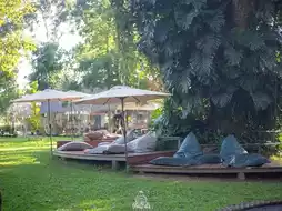 Welcome the cold weather, invite you to visit Khao Yai. I would like to recommend a beautiful cafe "Assana Cafe Khaoyai". It is a shady cafe with a very good atmosphere. It is very natural because it is full of trees, streams and waterfalls. The cafe has a lot of seats, both inside the shop and in the outdoor area by the waterfall. There are drinks, food, and snacks. There is a playground for children and riding a tank train, which is an activity that children love. Kayaking or if anyone wants to set up a tent, you can contact to reserve a tent site. It can be said that you can come to one place and have everything. It is fun and chill.